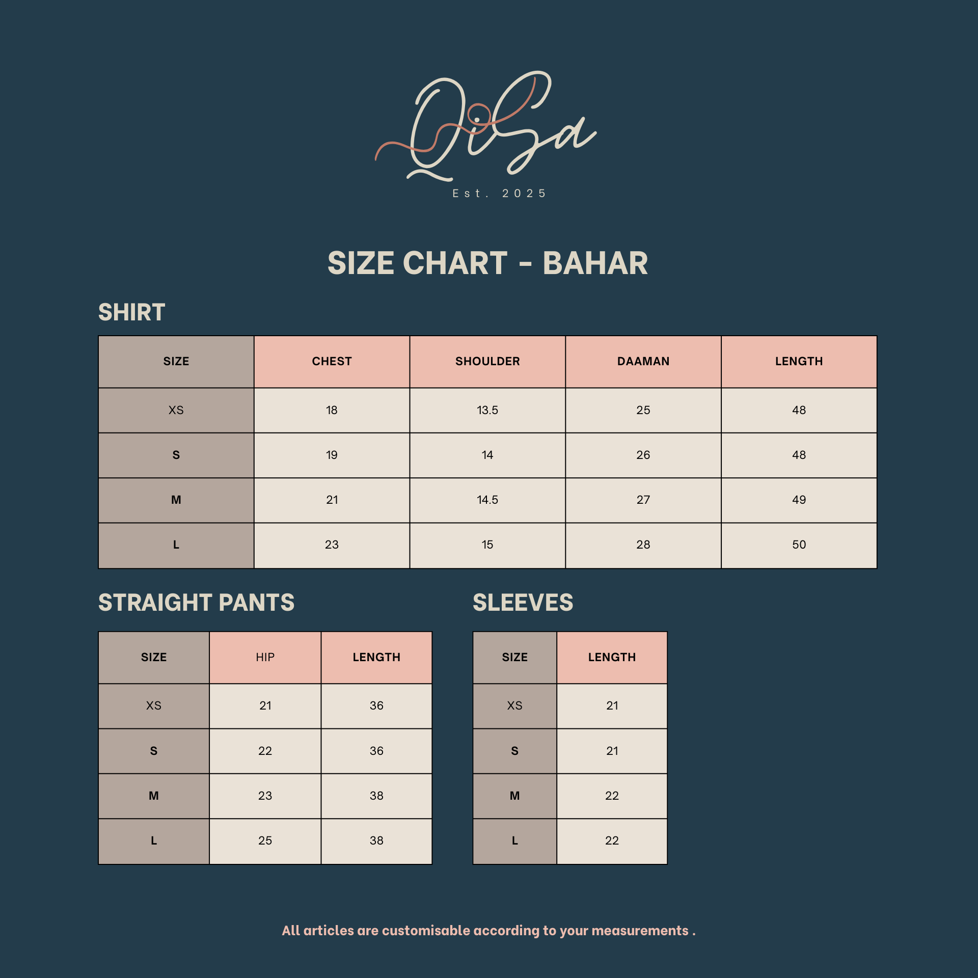 *All outfits can be customised to your required size.