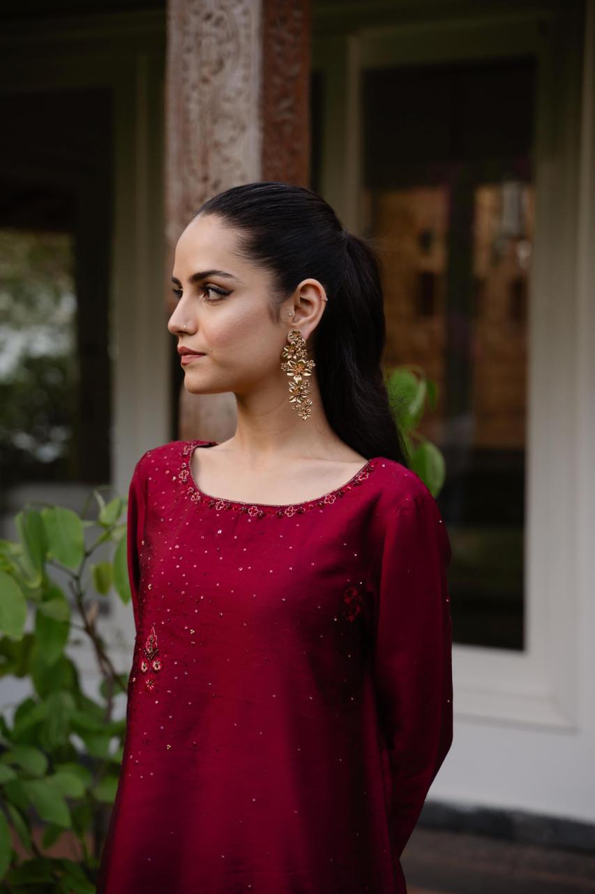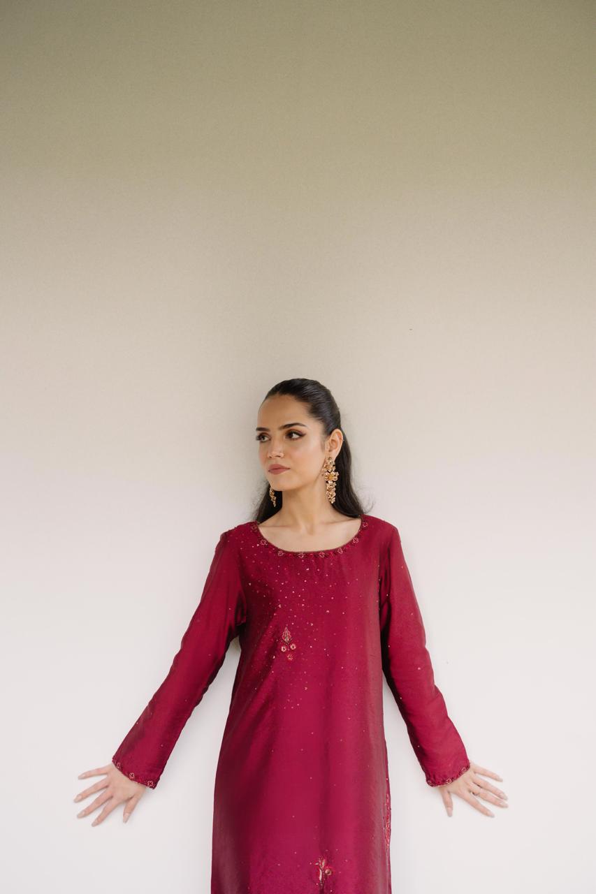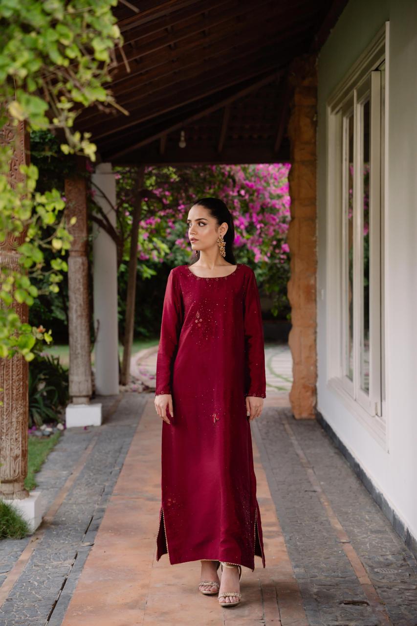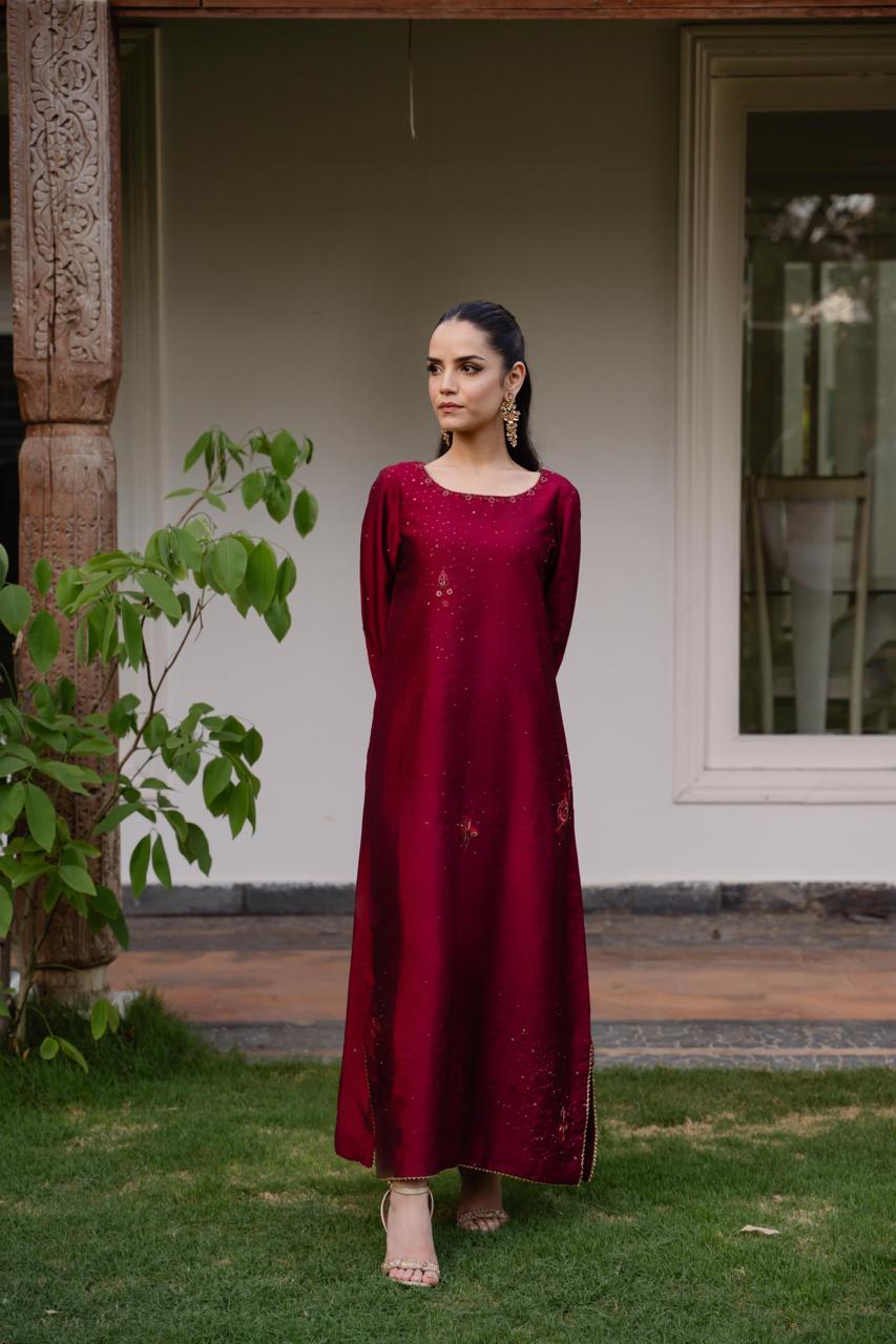 This straight, flowy kaftan is crafted from pure Sheesha silk, chosen for its subtle sheen and luxurious drape. Designed with a focus on elegance and understated impact, the piece features delicate handwork detailing on the front, along with the sleeves and neckline. The back is thoughtfully designed to create a timeless silhouette that’s sure to turn heads.